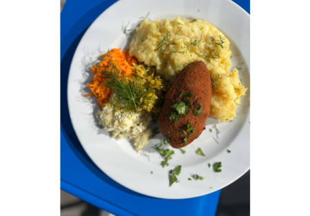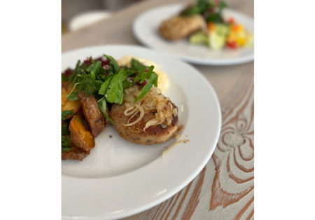 Pulpeciki rybne na risotto z sałatami z vinegretem