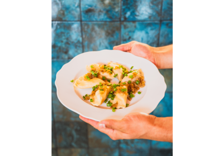 Ravioli ze szpinakiem i fetą z sosem śmietanowym i parmezanem